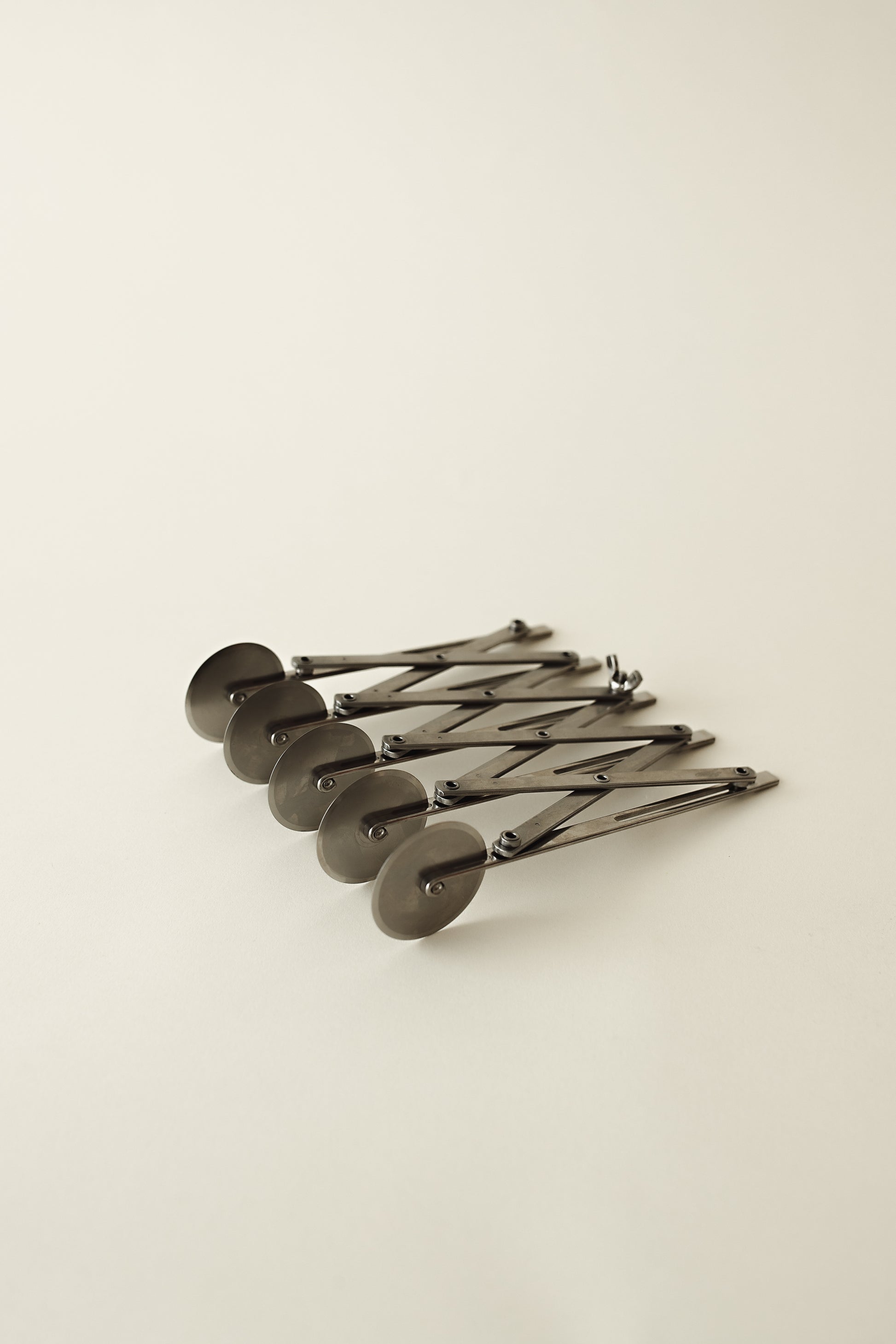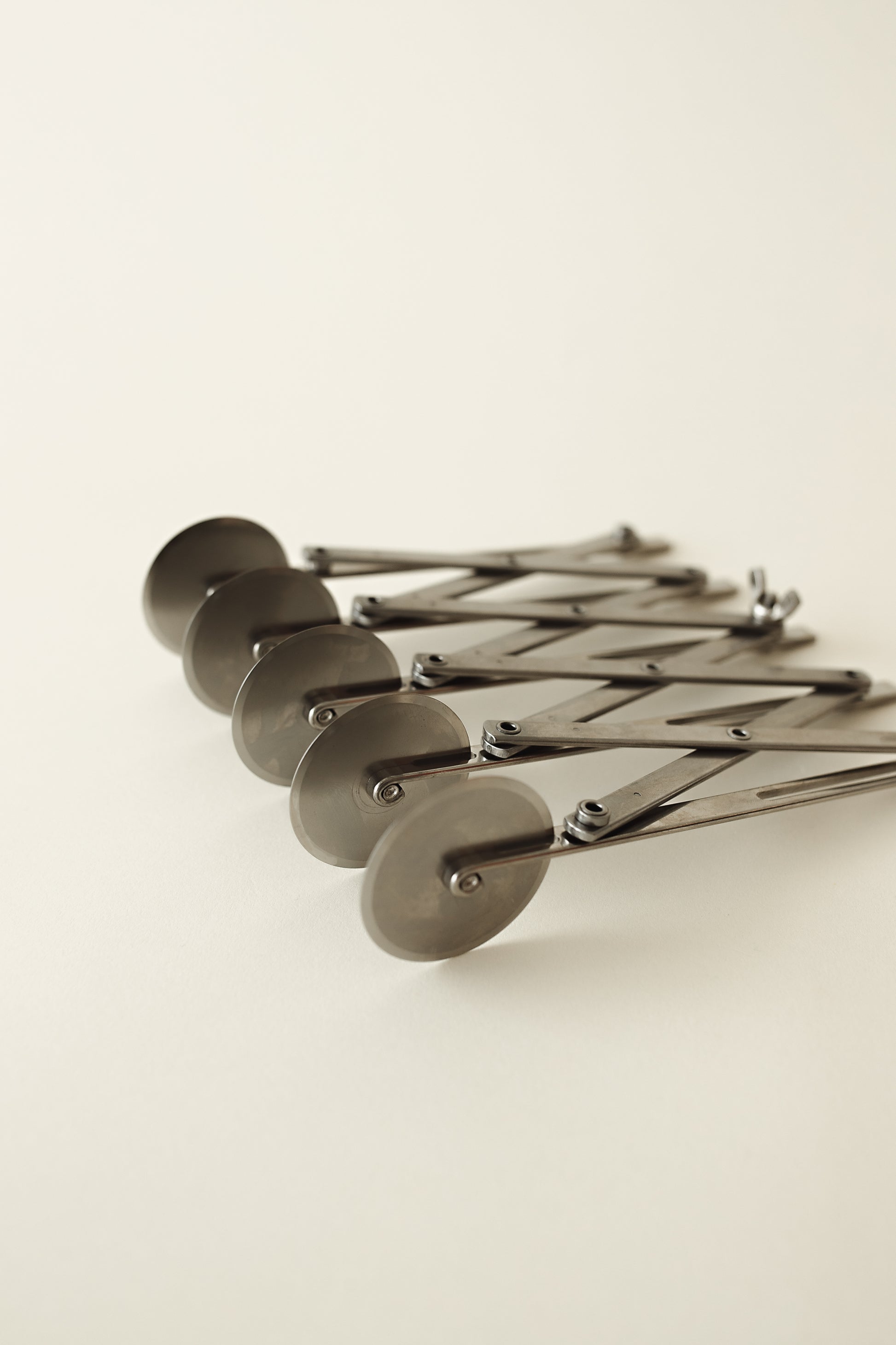 This 5-wheel stainless steel pastry cutter will make cutting and scoring your baked goods a breeze. Use it to cut brownies, bars, pie crust dough, pasta dough, cracker dough, and anything else your uniformity-seeking heart desires! It has five 2 1/8" wheels and collapses for easy storage.