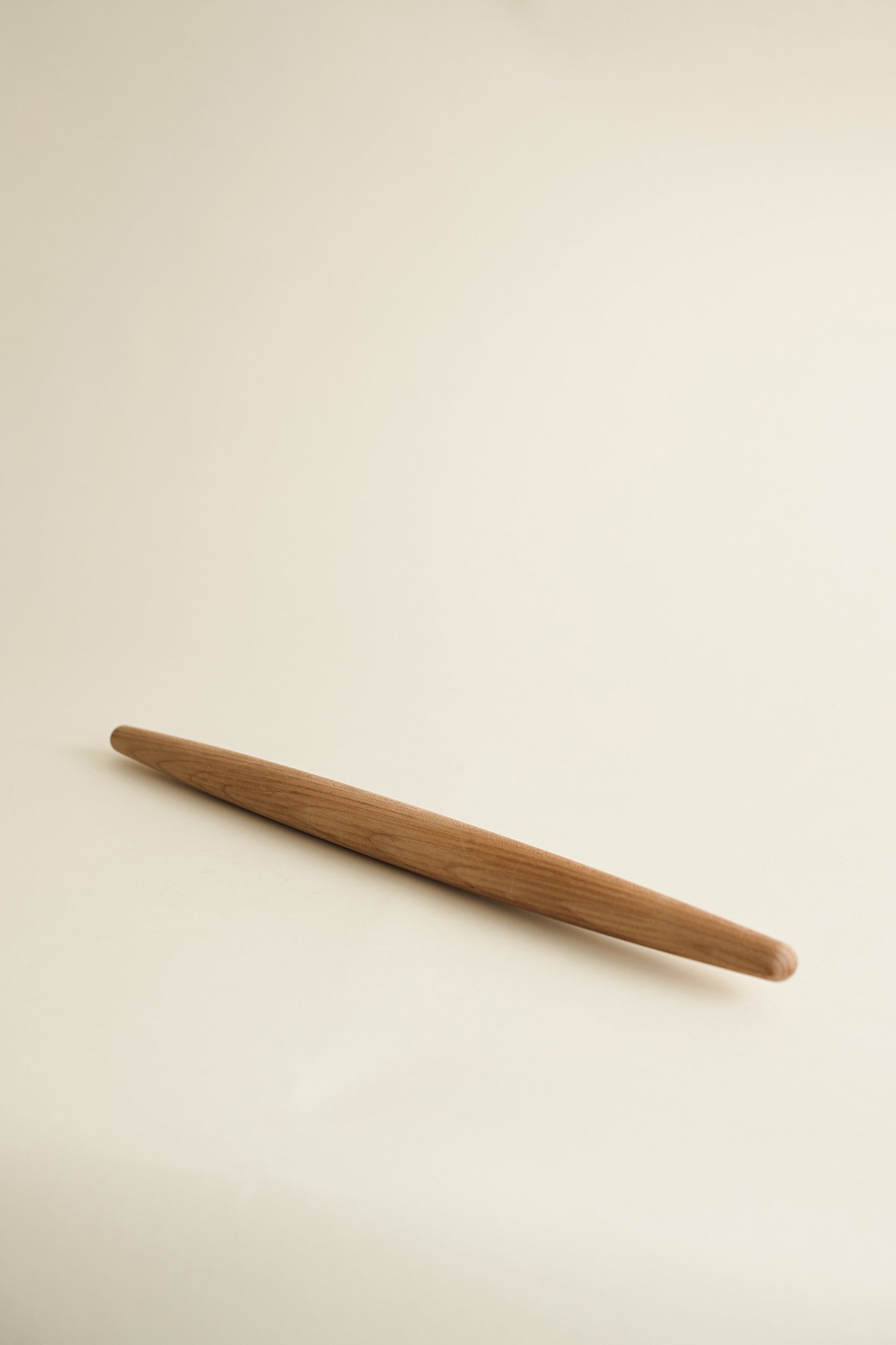 The elegant, contoured silhouette of our gorgeous wooden rolling pin offers bakers the opportunity to create goods reminiscent of those found in Paris's finest patisseries. This agile tapered rolling pin gives an intimate baking experience where maneuverability and pressure regulation are essential. Developed in collaboration with Christopher Kimball from Chris Kimballs' Milk Street.