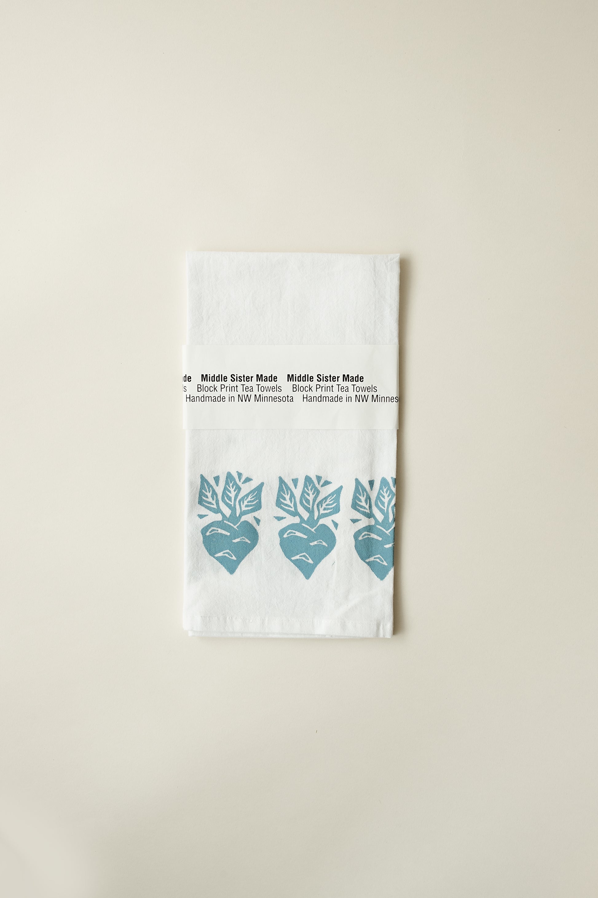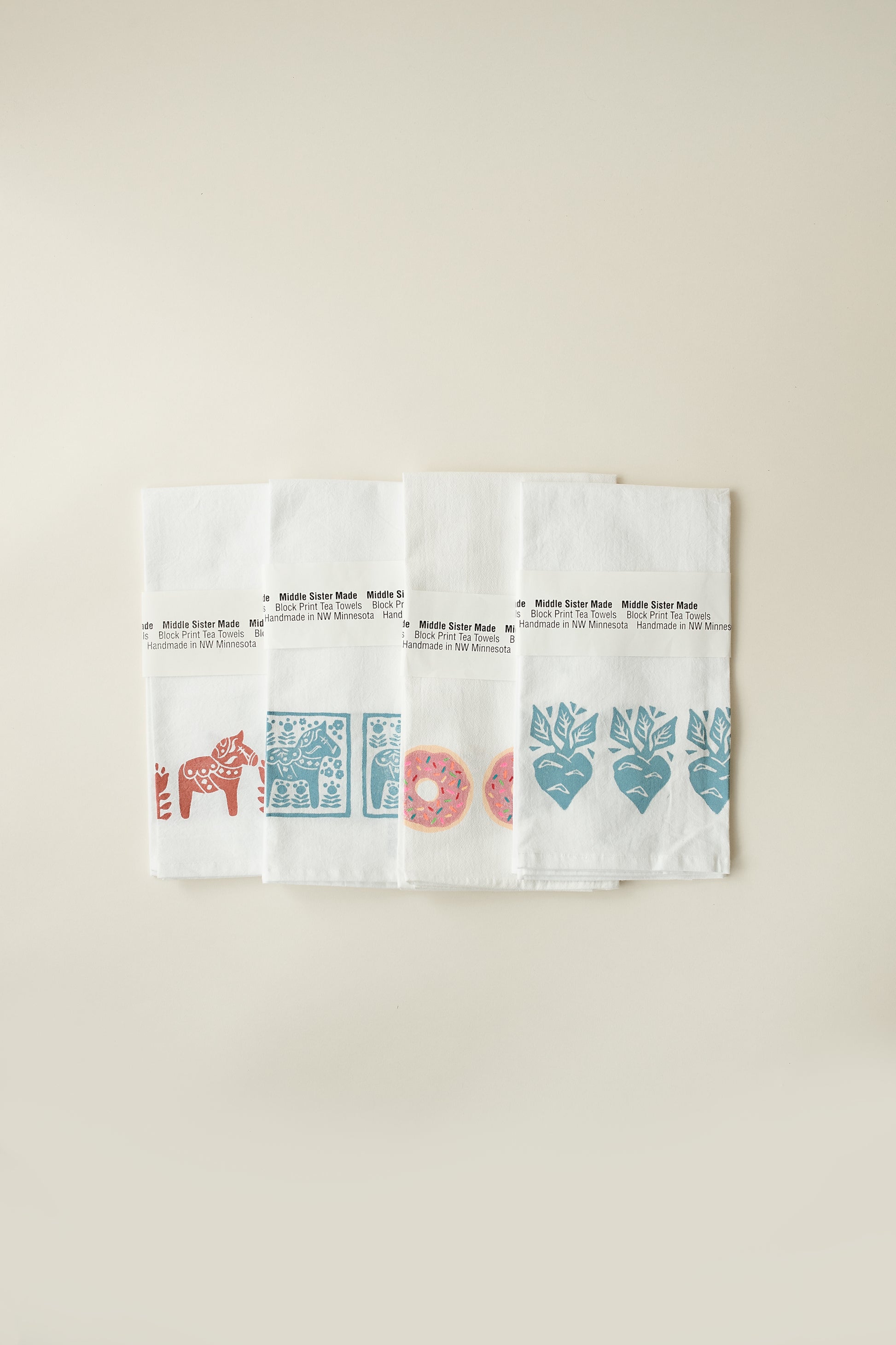 These block print tea towels are handcrafted and made locally in NW Minnesota.