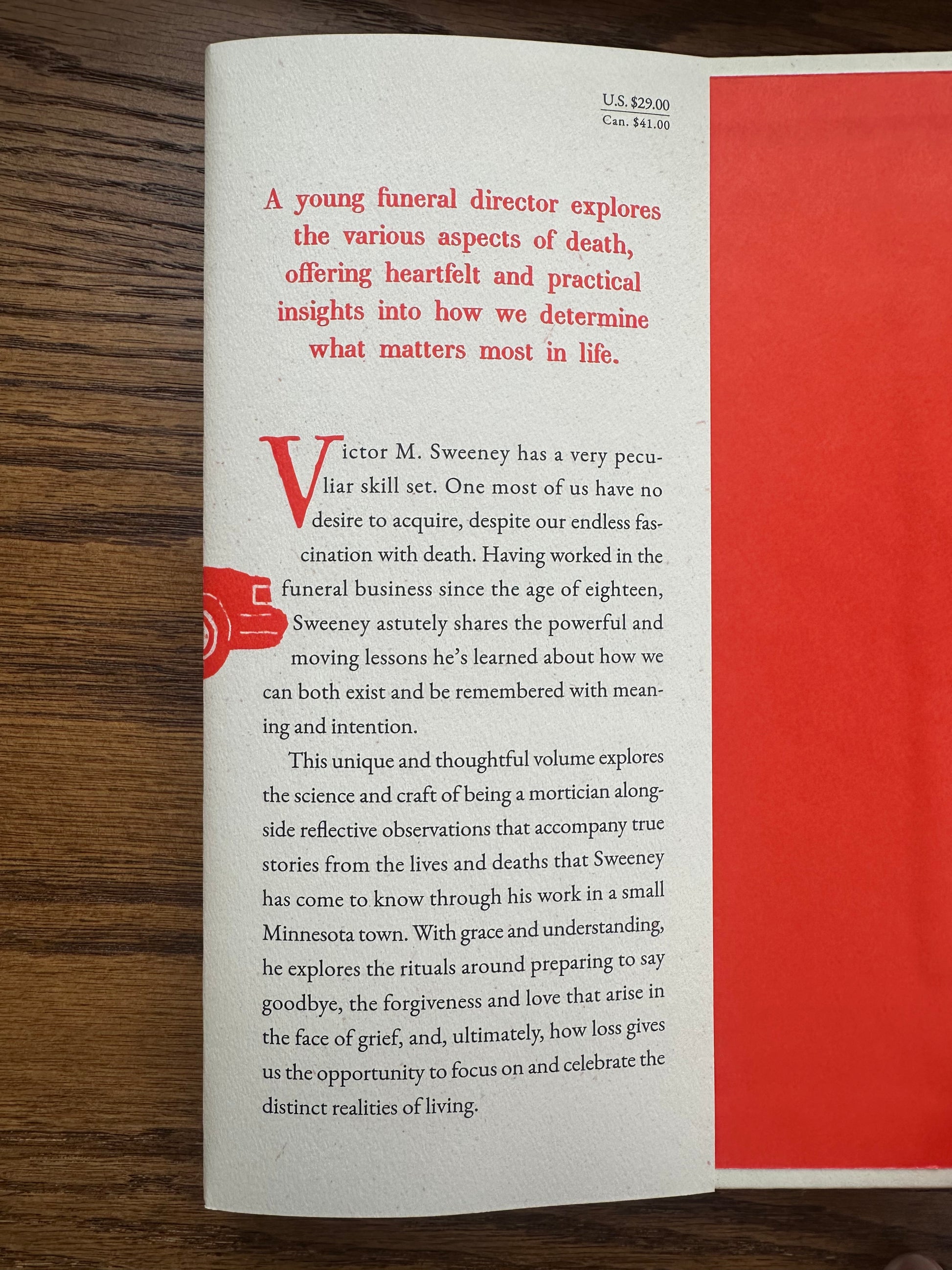 Each page is filled with reflective observations and true stories from the lives and deaths that Sweeney has come to know through his work in a small Minnesota town. With grace and understanding, he also explores the rituals around preparing and saying goodbye to those we mourn; the love and forgiveness that arises in the face of grief; the universal interplay of walking between the chasm of the mundanity of a required business practice that touches on humanity’s deepest metaphysical realities; and ultimately, how loss gives us the opportunity to focus on and celebrate the elements we have gained.